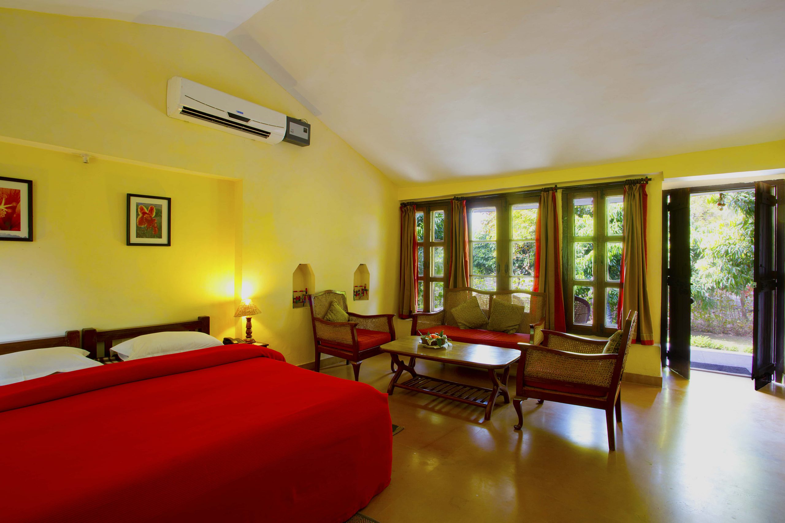 Ramnagar, Uttarakhand Live on a farm, wander in the forest!Have you ever dreamt of walking in an orchard, plucking the fresh, luscious fruits and digging your teeth into the juicy sweetness? Make your dream come true in the heart of a forest. Watch honey being extracted right in front of you and get to taste it too. Relish the steaming hot meals cooked using the freshest picks from the farm. And after you’ve savored the sumptuousness, the wilderness beckons you for a stroll in the vast woods that lie beyond the seven acres of lush green expanse. Only eight rooms stand on the massive property with a maximum area dedicated to the greenery. A jungle within a jungle.