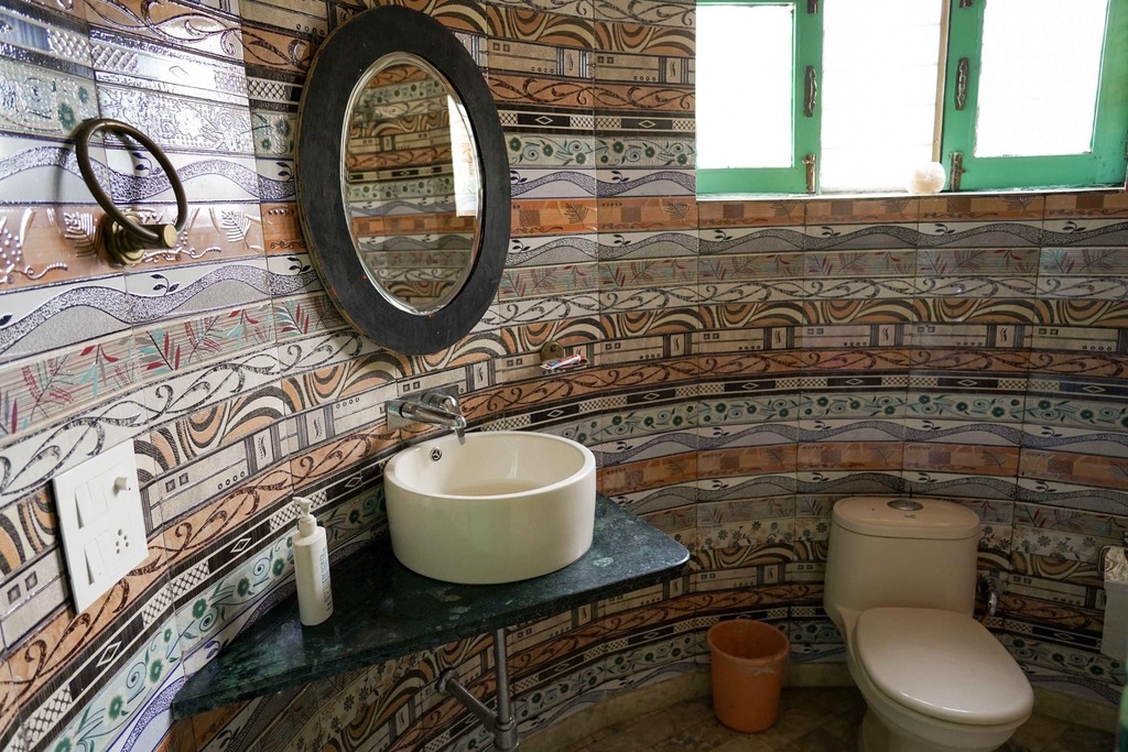 Dwarka, Delhi Experience Sustainable Living in bustling Delhi.A massive property close to the Delhi airport, this lush farmhouse is straight out of a storybook. Built with stones and with many farm animals like Geese, Goats, Ducks, Cats, Dogs roaming about, it is the perfect haven for animal-loving families. You will find colorful vegetable patches and trees laden with delicious-looking mangoes, papaya, pomegranates and bananas. The eco-stay has ticked off all sustainable measures on the list such as Solar Panels, Composting, Rainwater Harvesting, Organic Farming and even an electric car.